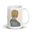 Tazza bianca in ceramica con una frase di empowerment e disegno originale.