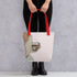 Borsa con manici colorati misura media, stampata con disegno originale di donna con tazza e frase 'Affari miei'.