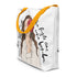 Borsa da mare con manici colorati misura grande con tasca interna stampa con frase di empowerment e disegno originale di donna con fiore-bomba.