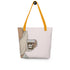 Borsa con manici colorati misura media, stampata con disegno originale di donna con tazza e frase 'Affari miei'.