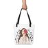 Borsa con manici colorati misura media, stampata con frase di empowerment e disegno originale di donna con fiore-bomba.
